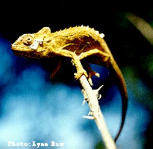 Bradypodion nemorale is indigenous to the Nklanda and Qudeni forests of Kwazulu, Republic of South Africa. It's preferred habitat is in the bushes of these dry forests. The basic color is a dark green with rust-colored patches. Gular and dorsal crests are present but a ventral crest is absent. The length of the tail is less than the length of the body. "Recurved, prominent casque and modest cranial casque" (Martin, 1992; p. 126). Total length between 6 and 8 inches.